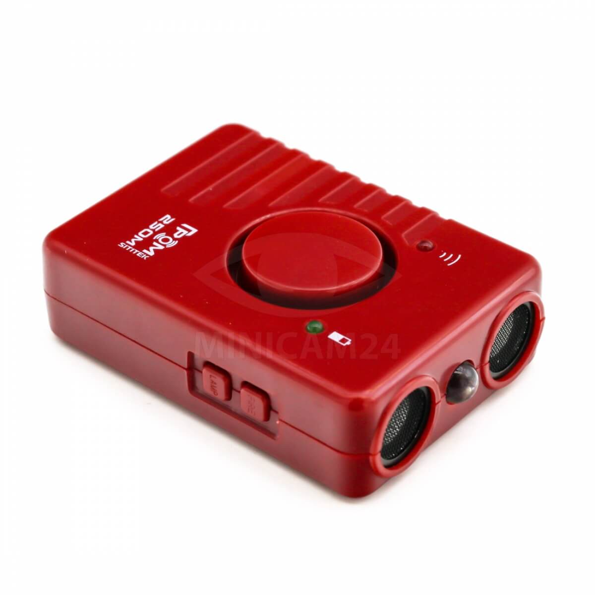 Мощный ультразвуковой отпугиватель для собак с двумя излучателями действует на расстоянии до 20 метров. Имеет широкий угол излучения и мощность до 120 дБ. Может использоваться в качестве фонарика и оборудован тревожной сиреной. Имеет встроенный аккумулятор с индикатором заряда.