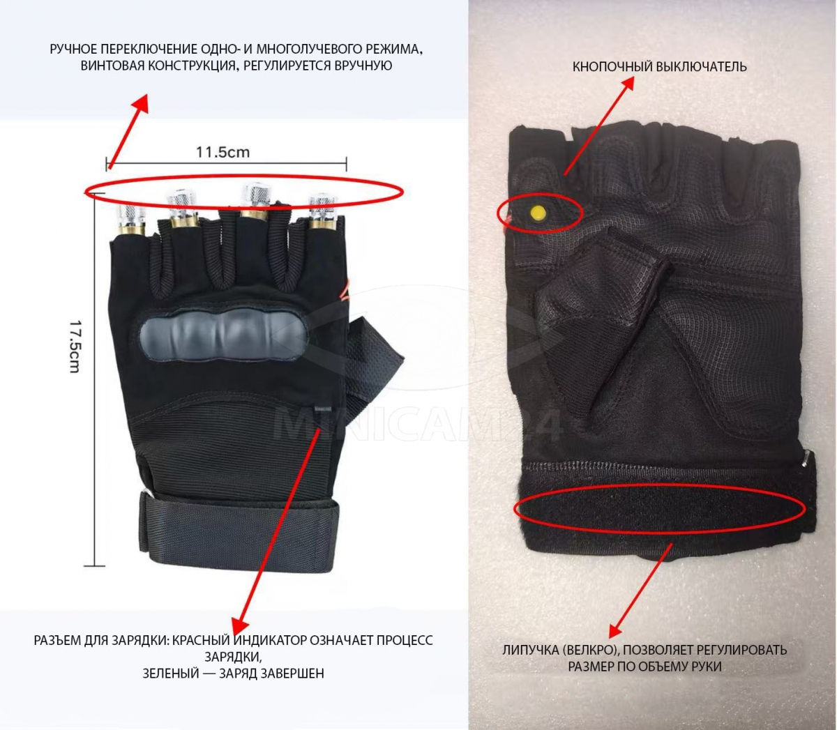 Зеленая лазерная перчатка Flare с 4 модулями, левая